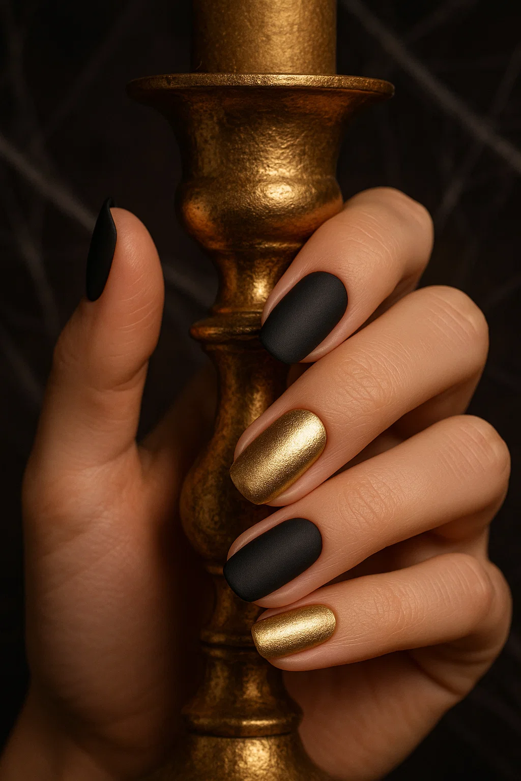 💡 Trend Tip: Alternate nails between matte black and shimmering gold.