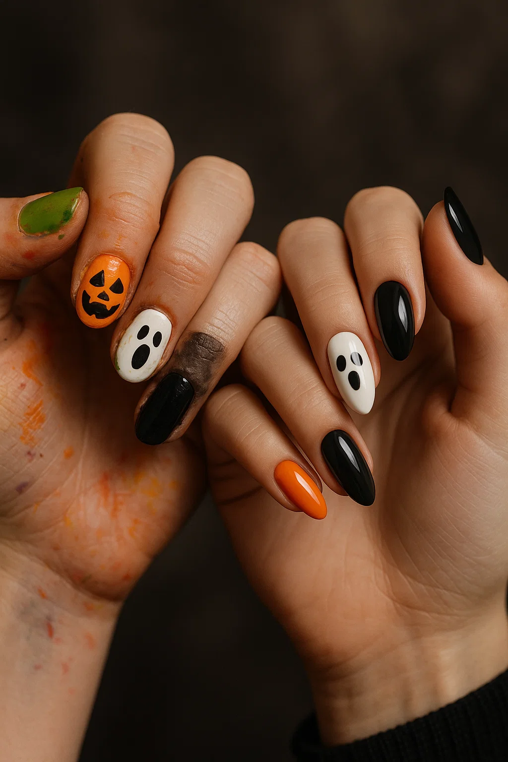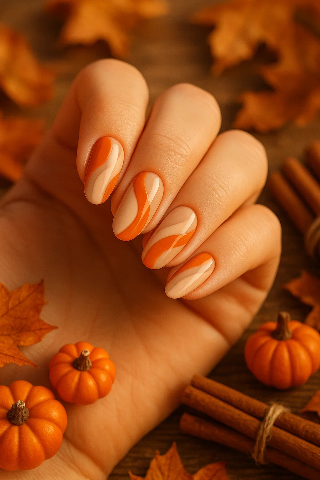 💡 Trend Tip: Use a nude base with pumpkin orange swirls or abstract shapes for a minimalist Halloween look.