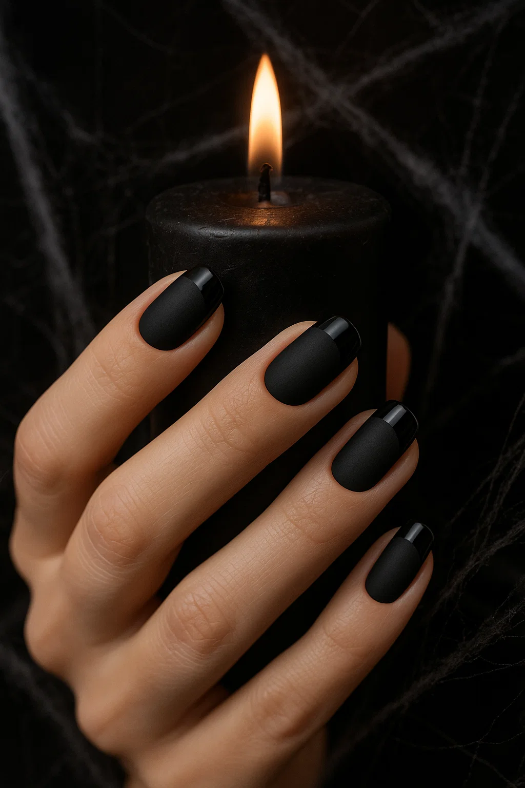 💡 Trend Tip: Combine matte black nails with glossy black tips or silver spiderweb accents for a dramatic finish.