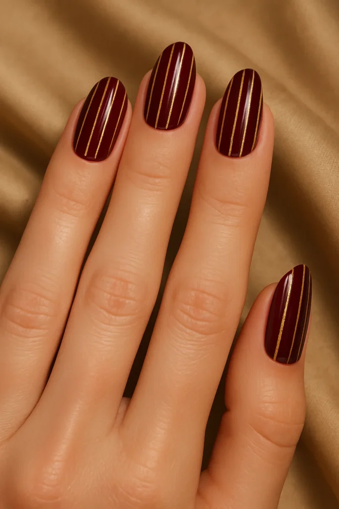 Burgundy with Gold Stripes: Deep burgundy base features thin vertical gold stripes for modern sophistication.