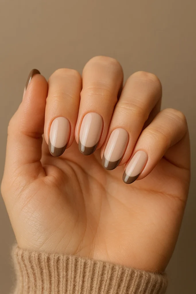 Cappuccino French Tips: Traditional French manicure reimagined with cappuccino brown tips instead of white.