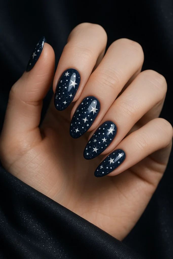Midnight Blue with Silver Stars: Deep navy provides a night sky canvas for scattered silver star accents.