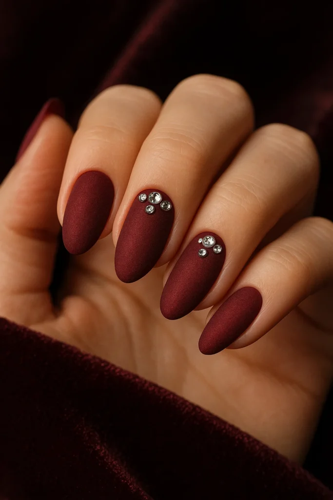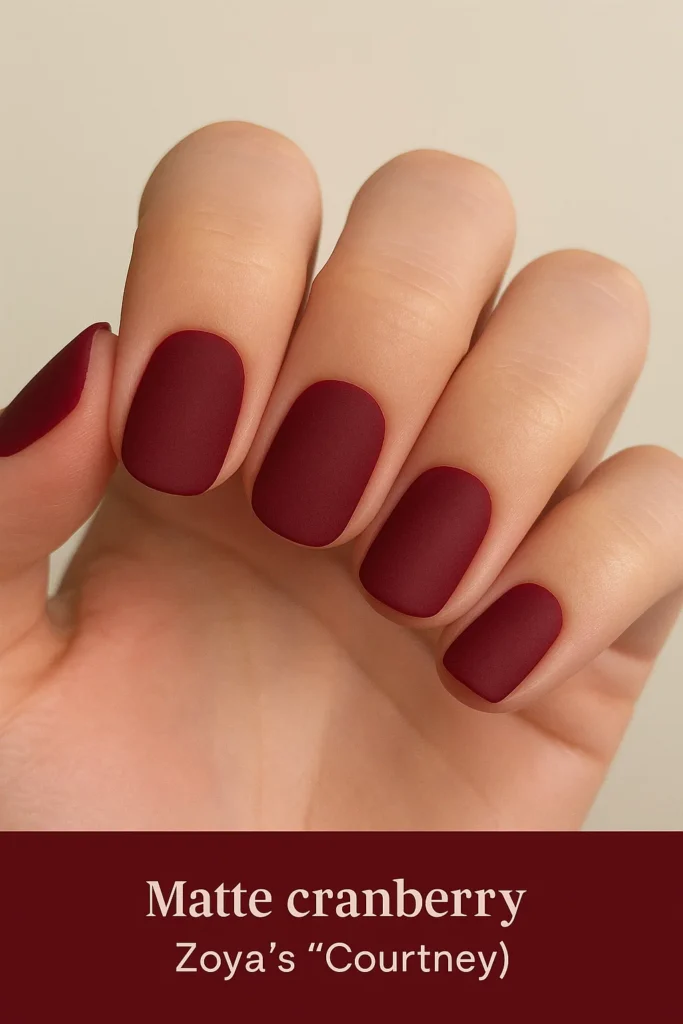 Cranberry Matte: Single-color matte cranberry nails deliver sophistication through simplicity.