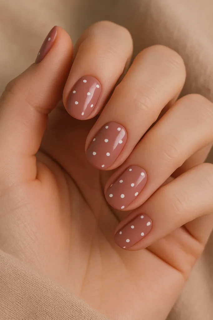 Dusty Rose with White Dots: Muted mauve-pink base features tiny white dots in random or geometric patterns.