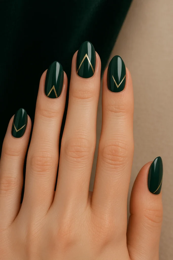 The base nails feature solid forest green (OPI’s “Here Today…Aragon Tomorrow”).