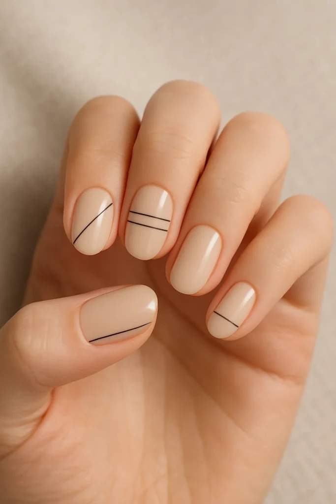 Beige Minimalist Lines: Nude beige base with thin black or brown lines creating simple geometric patterns.