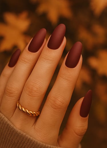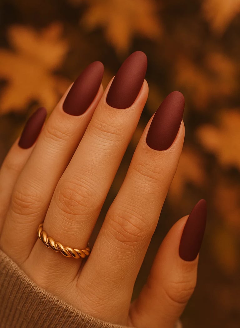 Matte finishes give your nails a soft, luxurious look. Burgundy is bold yet classy for fall.