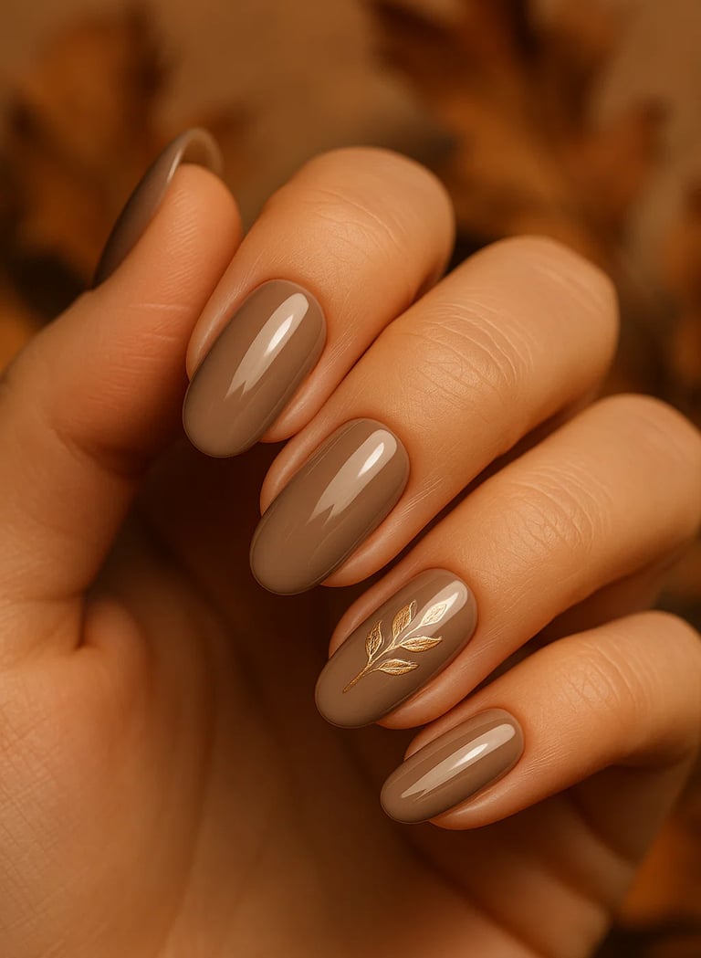 Add metallic gold leaves to a taupe or chocolate brown base — elegant, festive, and totally fall-ready.