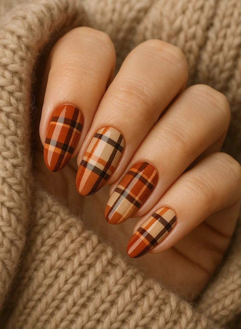 🪶 Tip: Use nail tape or a fine brush to create perfect plaid lines.