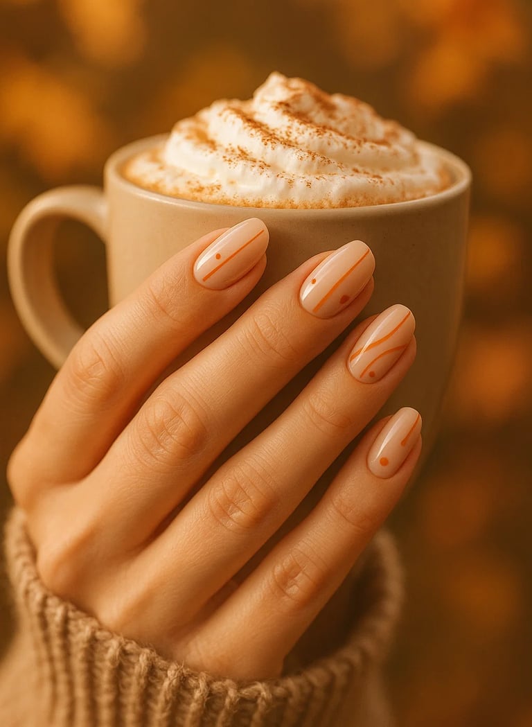 🪶 Tip: Use nude polish as a base and add pumpkin accents for subtle contrast.