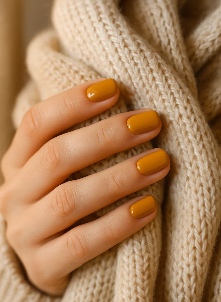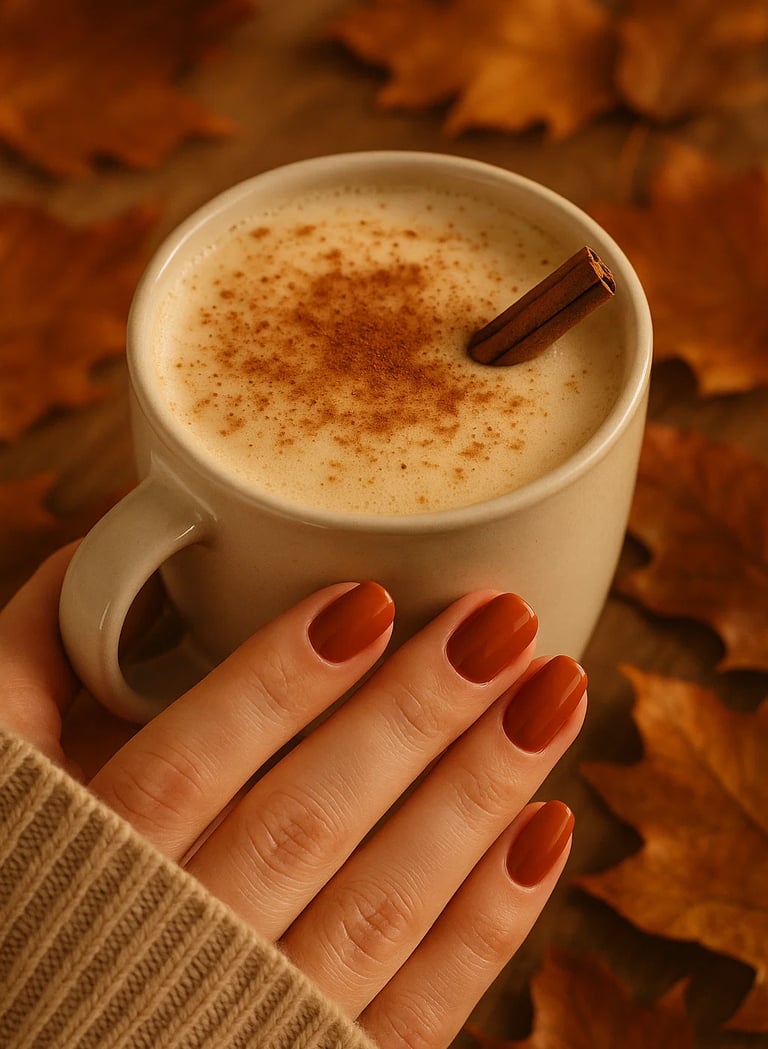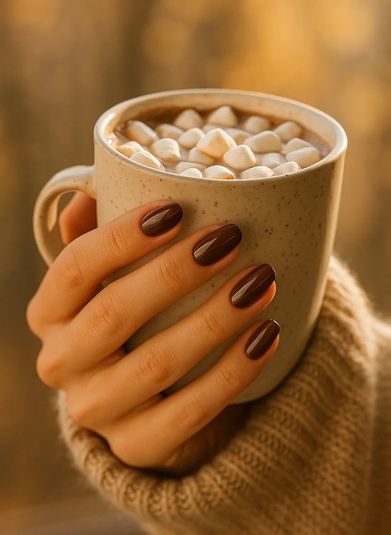 → Short almond or square nails complement cozy autumn shades perfectly.