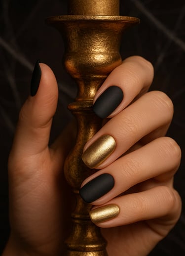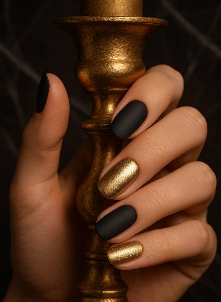 💡 Trend Tip: Alternate nails between matte black and shimmering gold.