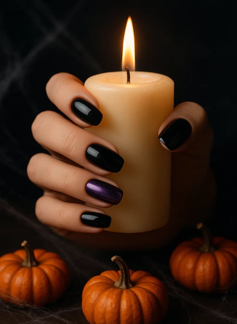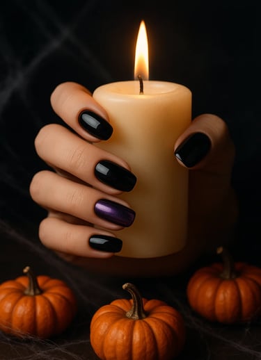 This year’s trends mix eerie elegance with a touch of glamour — think glossy blacks, metallic purples, and shimmering golds that feel both festive and fashion-forward. Let’s dive into the most hauntingly beautiful nail trends for 2025!