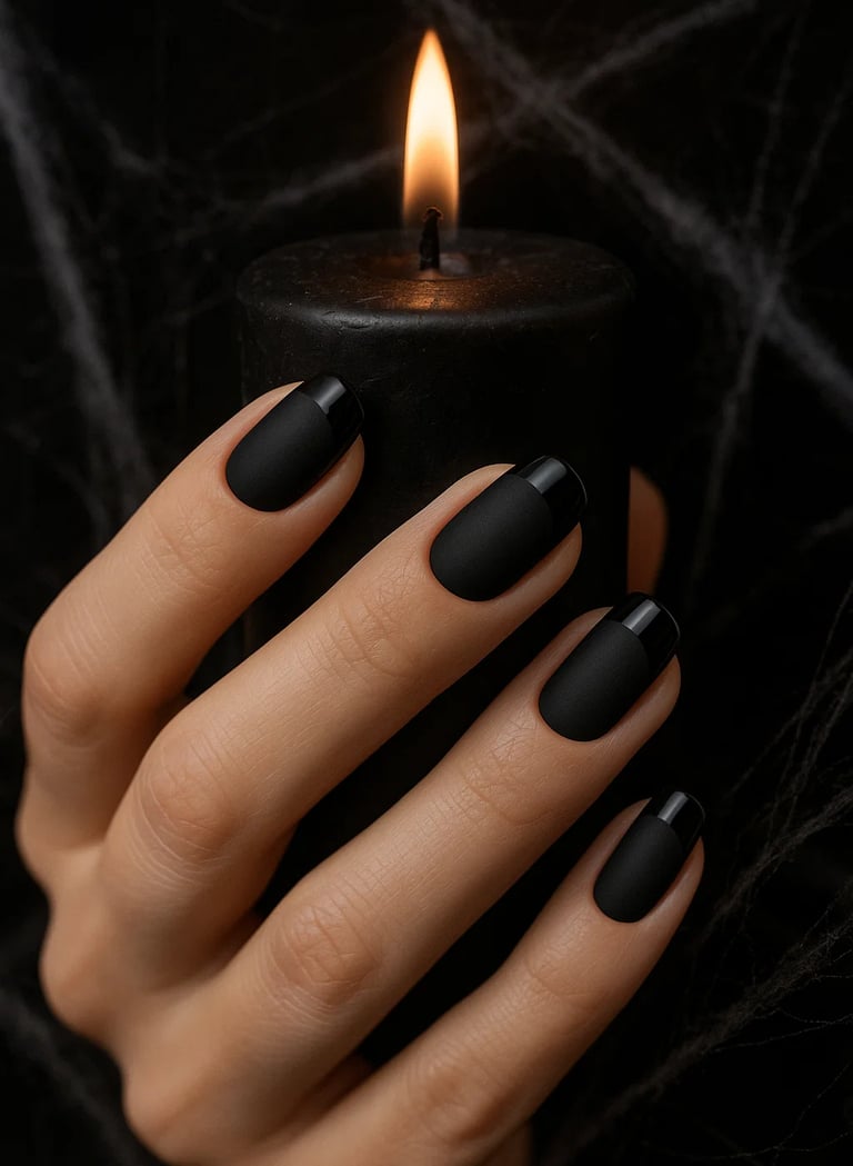 💡 Trend Tip: Combine matte black nails with glossy black tips or silver spiderweb accents for a dramatic finish.