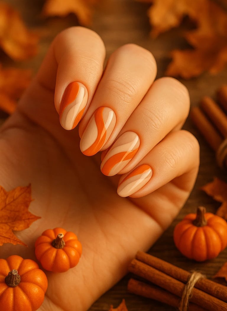 💡 Trend Tip: Use a nude base with pumpkin orange swirls or abstract shapes for a minimalist Halloween look.