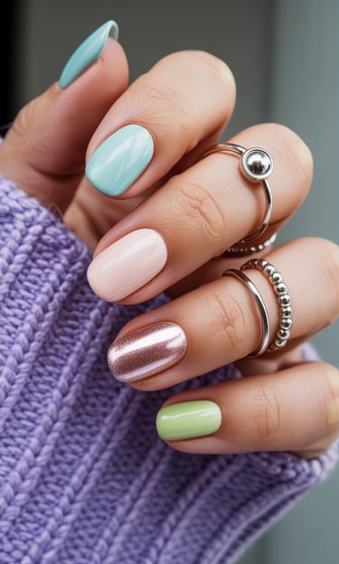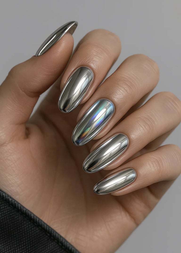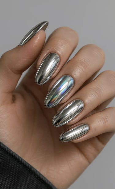 Chrome & Metallic Finishes: Silver, gold, and holographic shine.